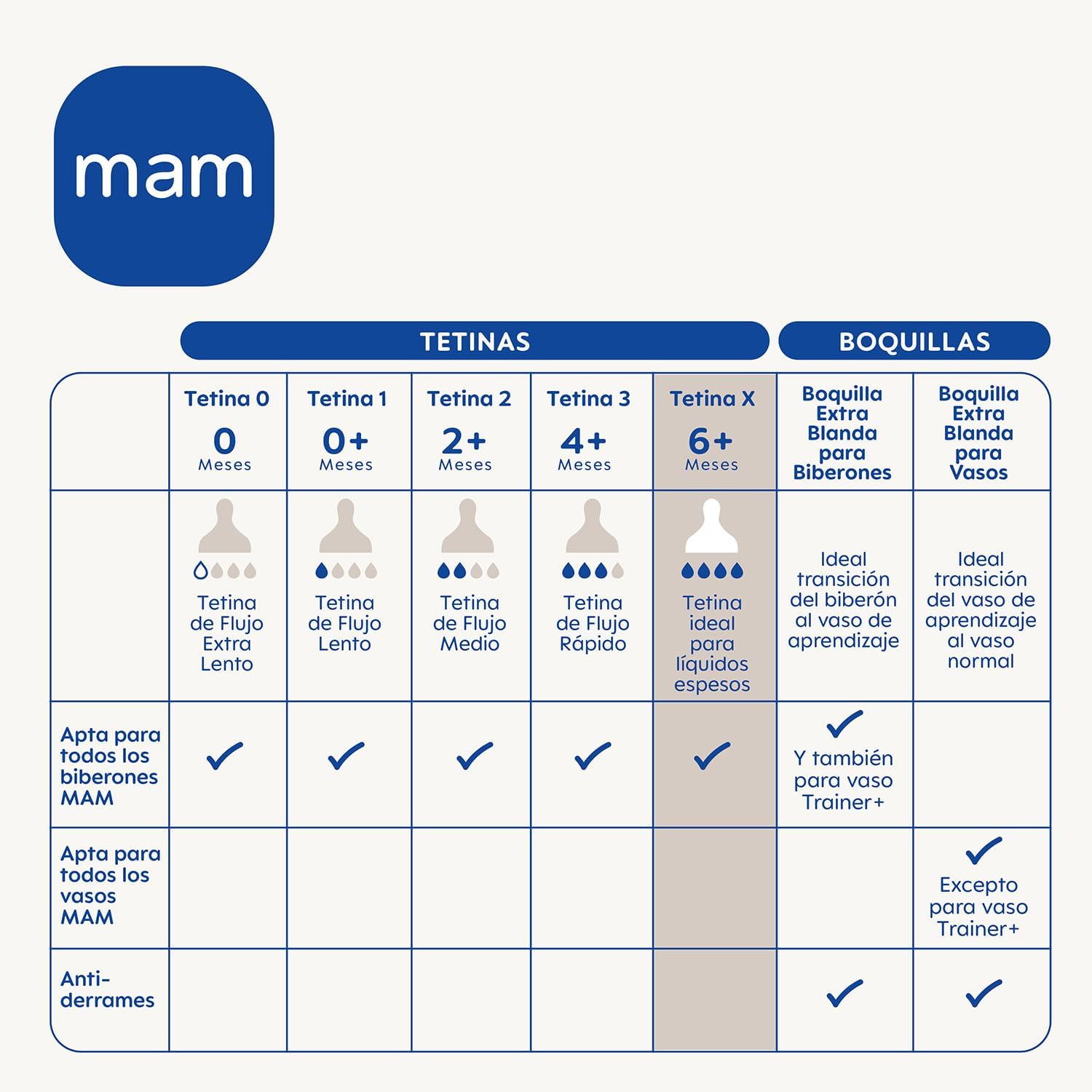 - IMPORTANTE: Todas las tetinas MAM se adaptan a todos los biberones MAM
