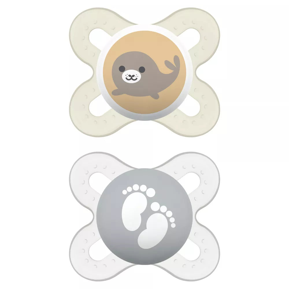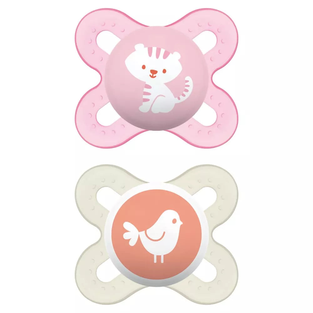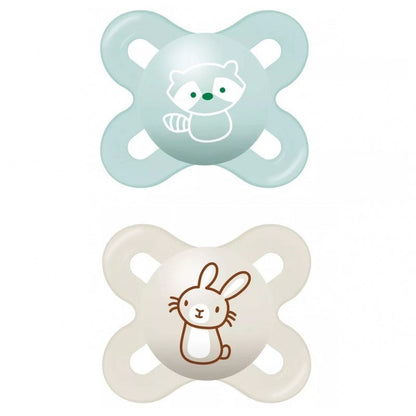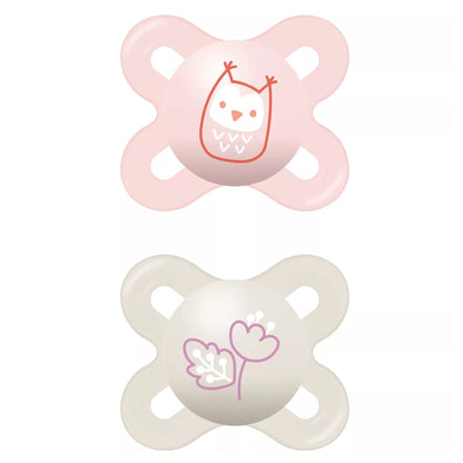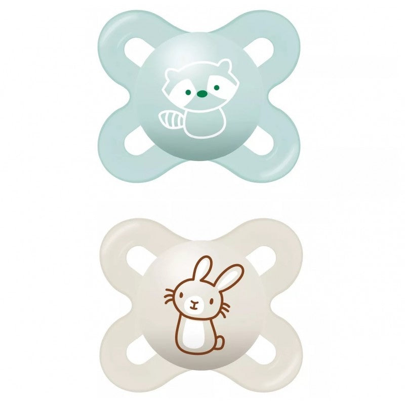 Los Chupetes Silicona Start de Mam son de tamaño muy pequeño, ligeros y con forma curvada para una máxima comodidad, especialmente pensados en los bebés recién nacidos.