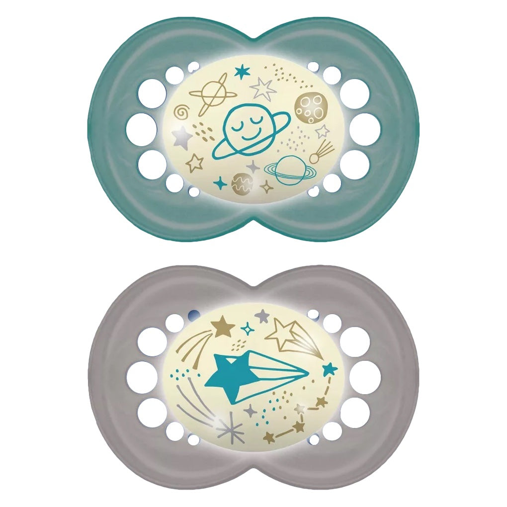 - BRILLA EN LA OSCURIDAD: Chupete fácil de encontrar por la noche gracias al botón que brilla en la oscuridad