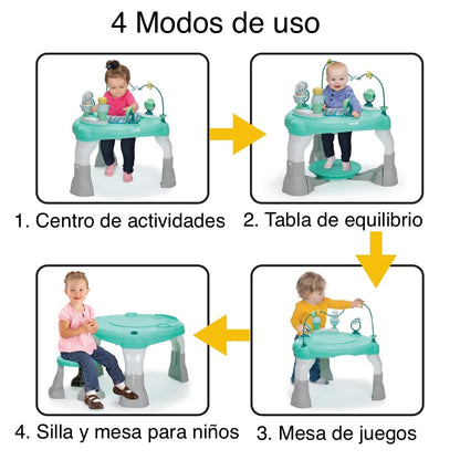 - 4 modos de uso: Mesa de actividades para bebés, mesa de equilibrio, mesa de actividades para niños pequeños y mesa de juegos.