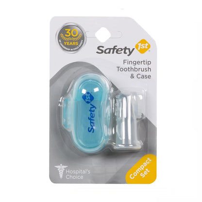 Cepillo de dientes tipo dedal para bebé marca SAFETY 1ST con estuche de almacenamiento para transportarlo de manera segura.