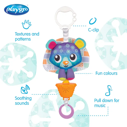El divertido Colgante musical de Playgro acompañará a tu bebé en sus paseos, a través de suaves y relajantes melodías.