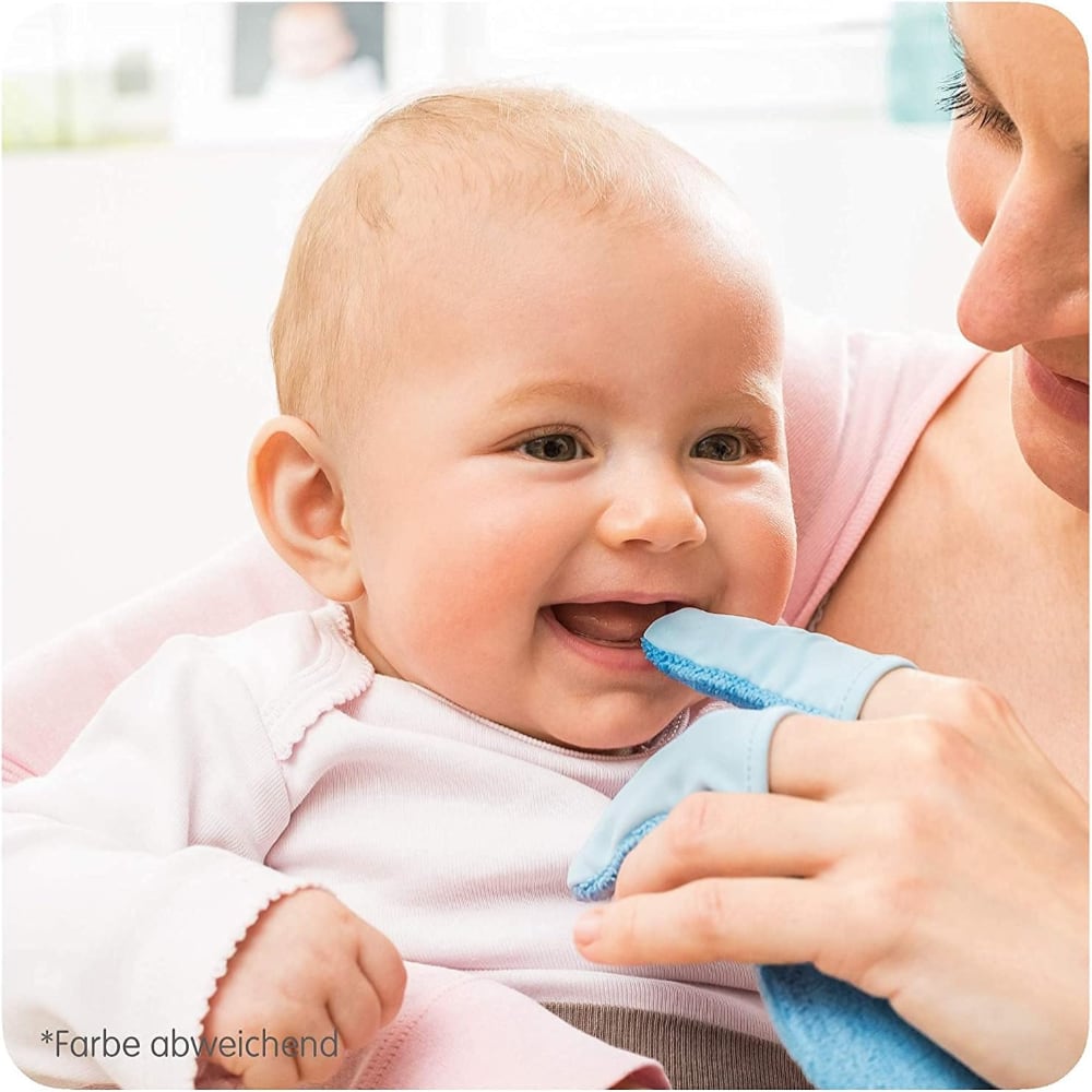 - Diseño ergonómico y fácil de usar: Se coloca en dos dedos para alcanzar fácilmente todas las áreas de la boca del bebé.