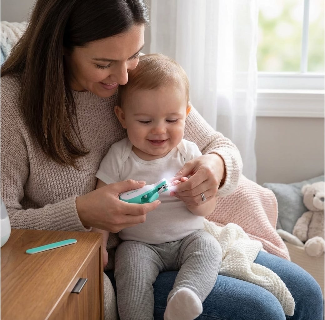 - Luz incorporada para visibilidad: Los cortauñas cuentan con una luz incorporada que ilumina las pequeñas uñas de tu bebé, lo que te permite ver claramente lo que estás haciendo.