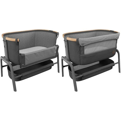 Gracias a las cinco posiciones de altura diferentes de Cuna Colecho MAXI COSI Lora Essential Graphite y la función de deslizamiento, tu bebé siempre estará muy cerca de ti.