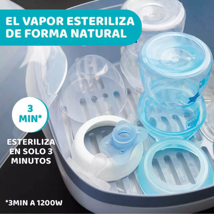 - Ahorro de tiempo: Esteriliza en solo 3 minutos (a 1200W).