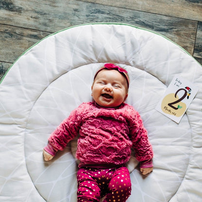Junto a este gimnasio, podrás encontrar doce tarjetas de hitos, las que te permiten capturar y compartir momentos claves durante el emocionante primer año de tu bebé con el gimnasio. Las tarjetas también contienen información de desarrollo, la cual le permite a los padres explorar más a fondo el desarrollo de su pequeño.