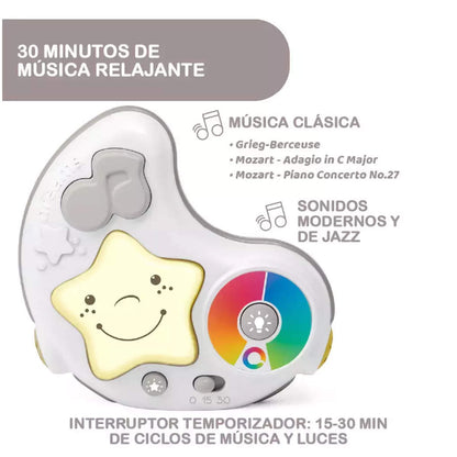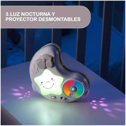 - Manta electrónica de juegos: la luz nocturna en forma de luna reproduce melodías y proyecta estrellas con cambios de color automáticos; la luz y la música pueden activarse por separado y cuentan con un temporizador de 15 o 30 min