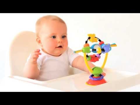 La base de succión se conecta fácilmente a cualquier superficie. El sonajero desmontable es en la forma ideal para que el bebé pueda girar y practicar su motricidad gruesa. Las perlas de click-clack y cintas de seda son ideal para el desarrollo de habilidades de motricidad fina.
