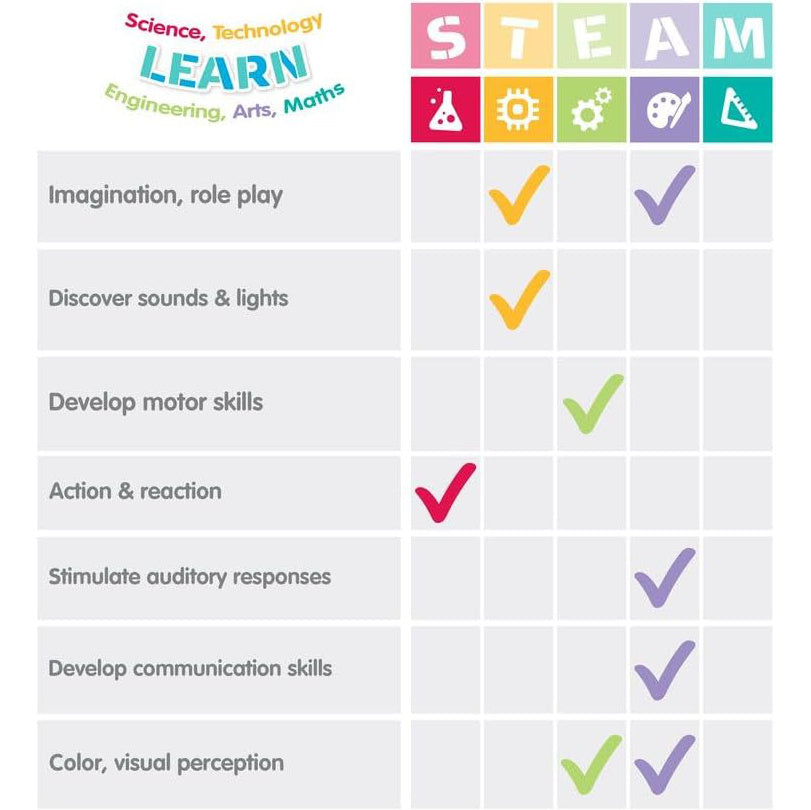 - Estimulación sensorial completa: Las luces coloridas y melodías alegres estimulan la vista y el oído, fomentando el desarrollo sensorial.