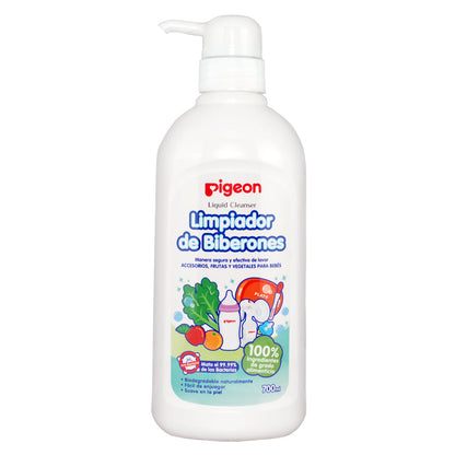 El Limpiador de Mamaderas con Dosificador PIGEON 700ml mata el 99.99% de las bacterias. (*Elimina las bacterias: Staphylococcus aureus, pseudomonas aeruginosa).