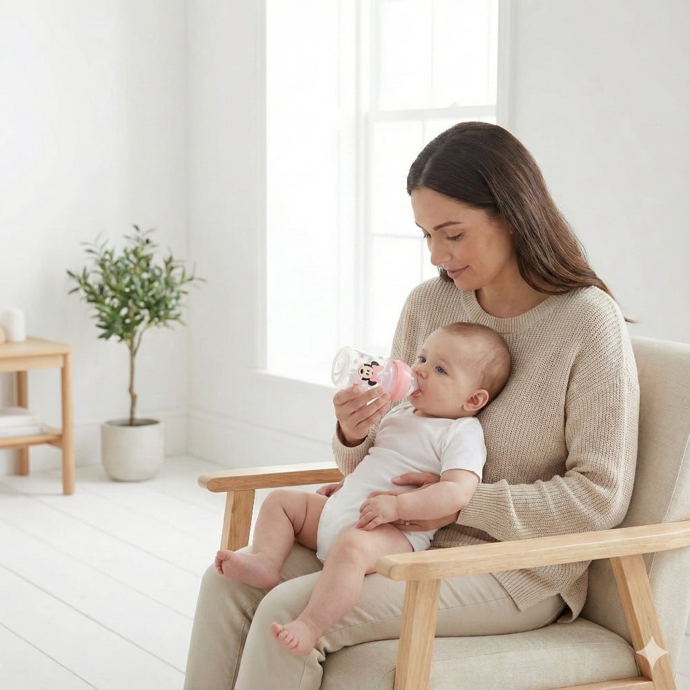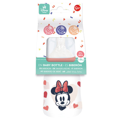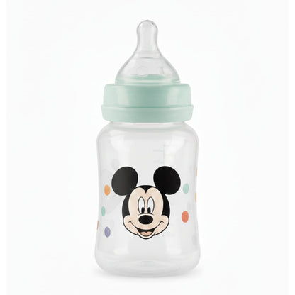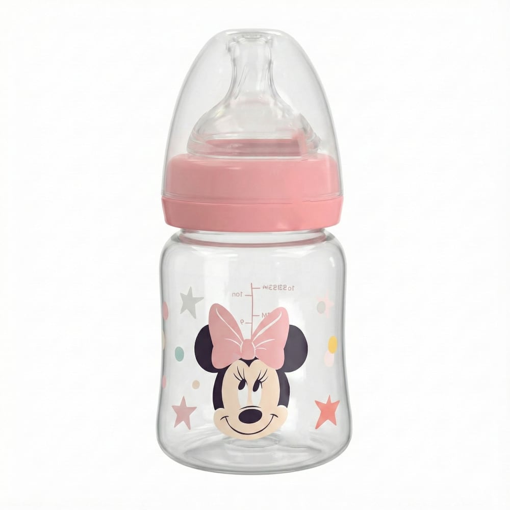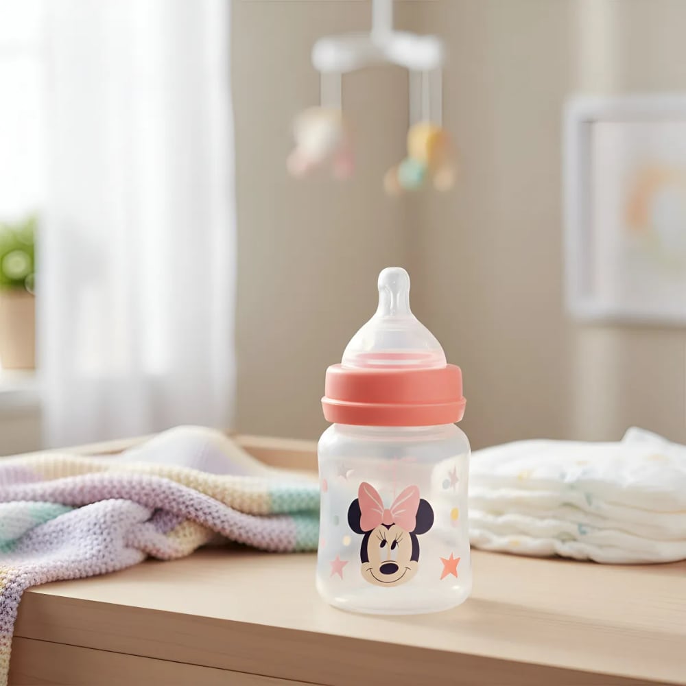 El Biberón Disney Baby de 150 ml está diseñado para ofrecer una alimentación cómoda, segura y controlada para bebés desde recién nacidos (+0 meses). Su tetina de silicona redonda con 3 posiciones permite regular la intensidad de la salida de líquido girando el biberón, asegurando una succión adecuada y adaptada a cada etapa del bebé.