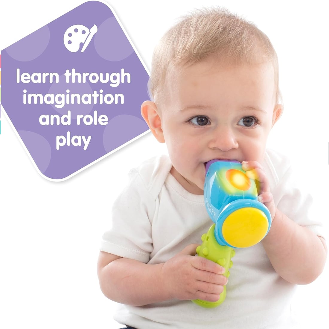 Este entretenido martillo produce divertidos sonidos cada vez que tu bebé lo golpea.