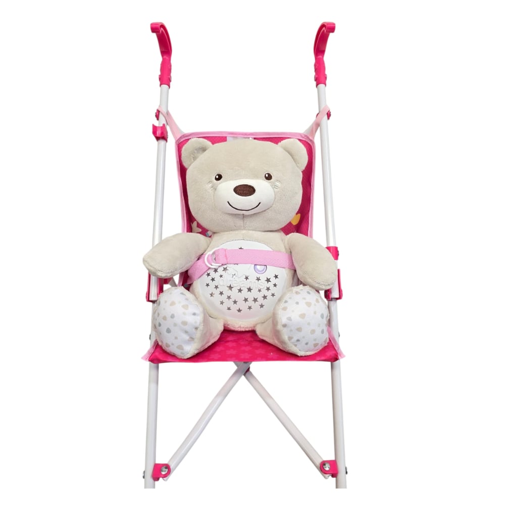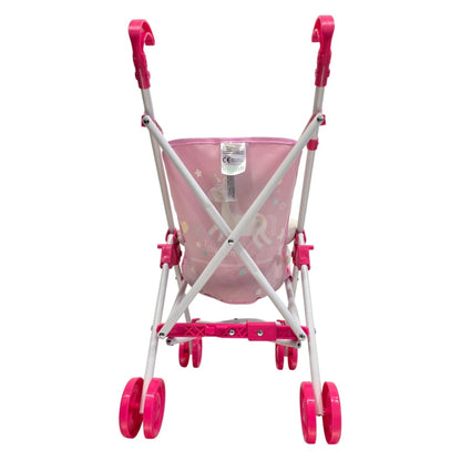 Cuenta con un asa cómoda para empujar, ruedas que giran suavemente, y un asiento adecuado para los muñecos o peluches favoritos. Su estructura estable y segura está pensada para niños a partir de los 2 años.