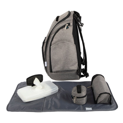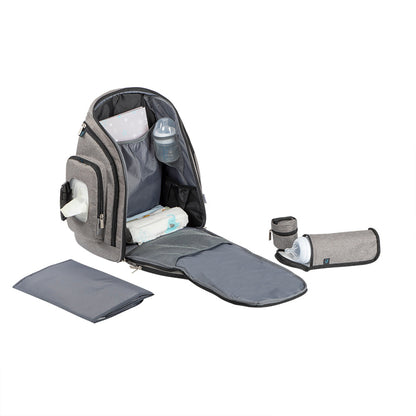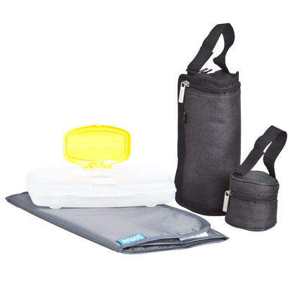 - Incluye: Mudador acolchado, porta mamadera térmico, porta chupetes térmico