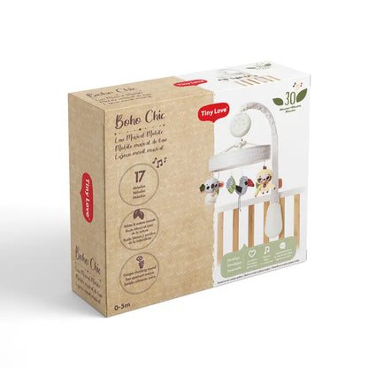 El entretenido Móvil Musical Boho Chic Luxe de Tiny Love es único en su tipo, y gracias a sus suaves colores, relajantes melodías y amigables personajes, ¡a tu bebé le encantará!