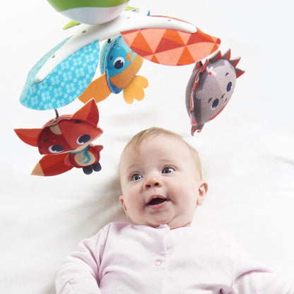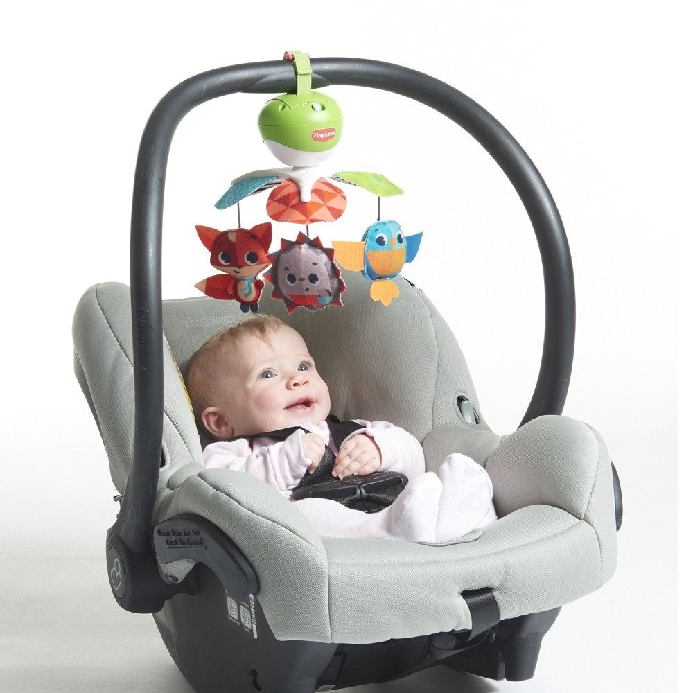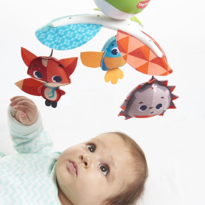 El adorable Móvil Take Along Medow Days de Tiny Love es perfecto para instalar ya sea en la cuna de tu bebé, mochila, portabebé, coche, ¡o donde tú prefieras!