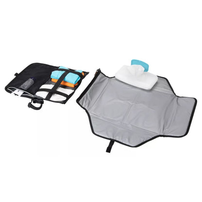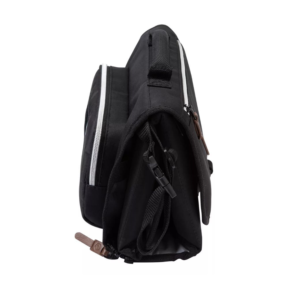 Ten todos tus artículos esenciales para cambiar pañales en un solo lugar mientras estás fuera de casa. El cambiador Maxi-Cosi Clutch tiene un organizador colgante con cremallera para pañales y otras necesidades de cambio, un compartimento exterior para toallitas para facilitar la limpieza y un pad extra grueso que se puede limpiar fácilmente.