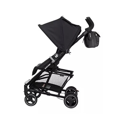Siempre tenga lo esencial al alcance mientras está fuera de casa. La consola del cochecito Maxi-Cosi tiene dos soportes para bebidas aislados para mantener tus bebidas frías, un compartimento para toallitas húmedas para facilitar la limpieza y se convierte fácilmente en una bolsa de transporte cuando dejas el cochecito.