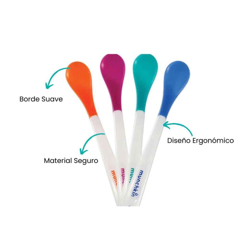 - Seguridad alimentaria: La punta cambia de color si la comida está demasiado caliente, protegiendo al bebé de quemaduras.