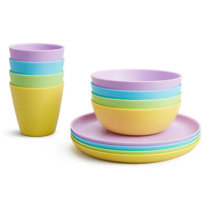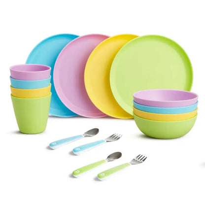 Mezcla y combina los platos, tazones y tazas del tamaño perfecto con los utensilios Splash ™ incluidos, los que son ergonómicos y fáciles de usar por las pequeñas manos de los niños.