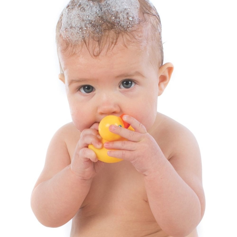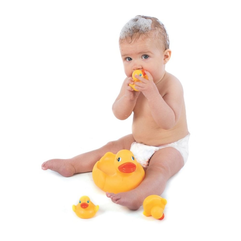 Estos cuatro adorables patitos flotantes de Playgro están sellados higiénicamente para evitar que se desarrolle moho en el interior y son seguros para que tu bebé los mastique.