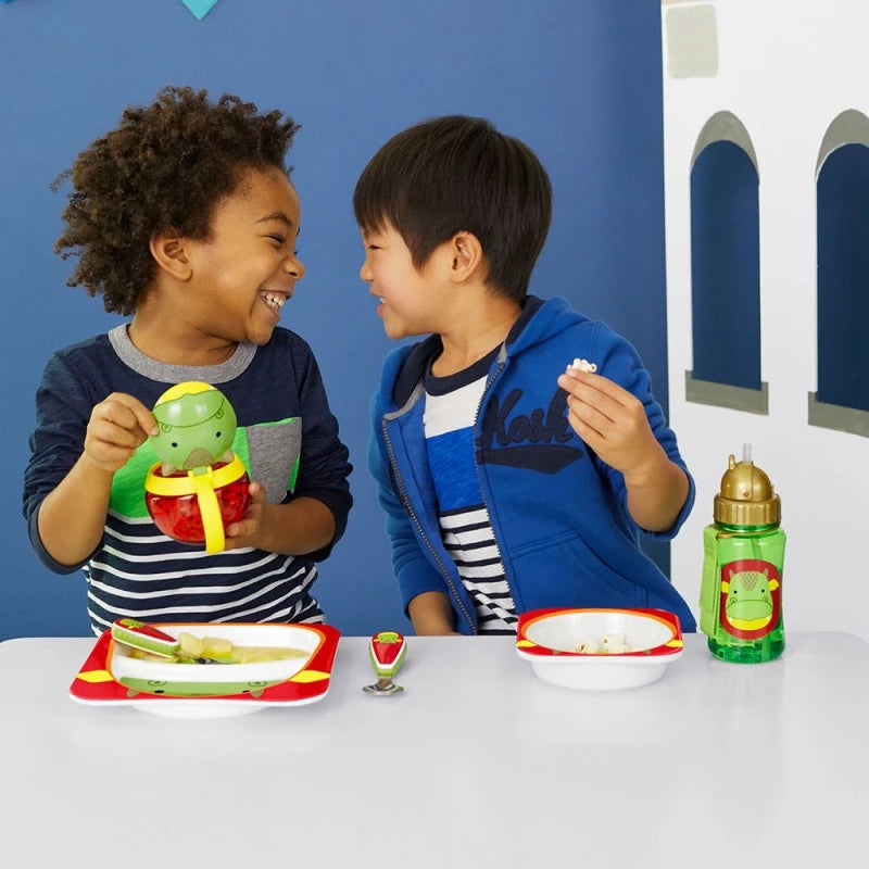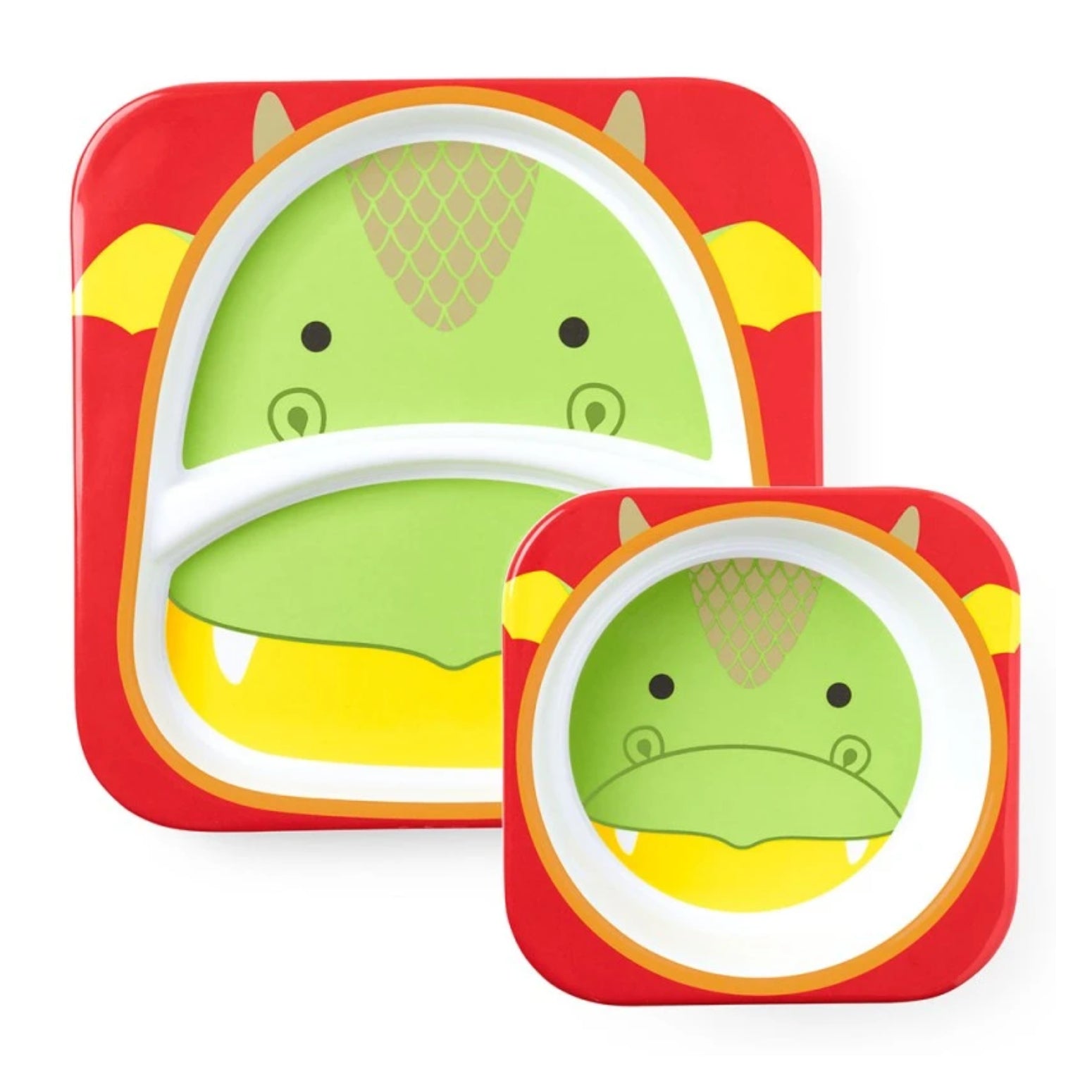 Haz de la hora de comer un momento lleno de alegría con el Set de Vajilla Zoo de Skip Hop. Diseñado especialmente para niños, este set incluye un plato y un bowl con adorables diseños de animalitos que harán que tu pequeño disfrute cada bocado. Fabricado con melamina resistente, es ideal para el uso diario y seguro para el lavavajillas (rejilla superior). Su tamaño es perfecto para manos pequeñas, fomentando la alimentación autónoma desde temprana edad. ¡Una opción divertida, segura y práctica para acompañar a tu hijo en cada comida!.