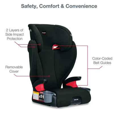 El asiento elevador Skyline cuenta con dos capas de protección contra impactos laterales que protegen a su hijo de las fuerzas del choque.