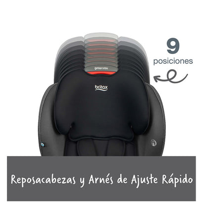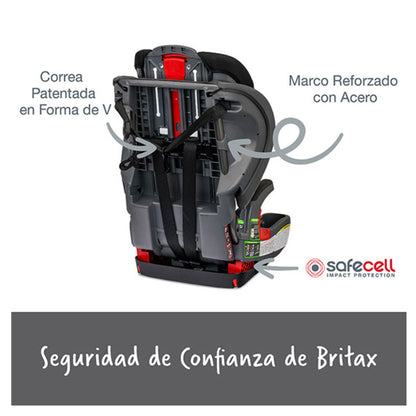 Britax recomienda que los niños vayan sujetos con un sistema de arnés hasta que superen los límites de peso o altura especificados en la silla.
