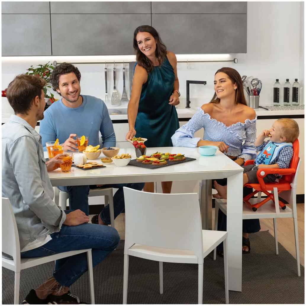 - Polivalente: Pocket Snack es un práctico asiento elevador que permite a tu hijo sentarse a la mesa con mamá y papá en un restaurante o en casa.