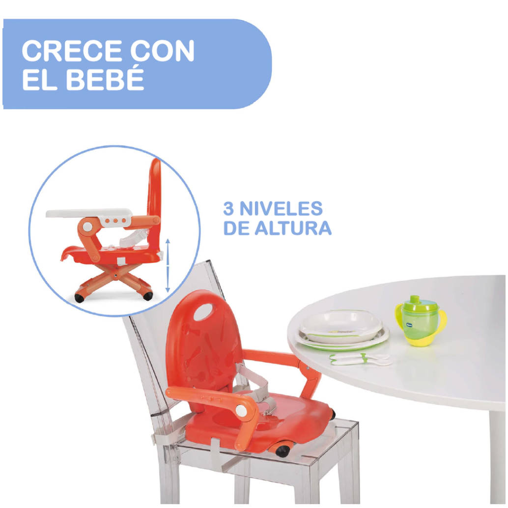 - Compacta y ligera: Pocket Snack es la trona portátil de bebé más compacta de Chicco, súper ligera por su peso de solo 2 kg y fácilmente transportable gracias al asa integrada.