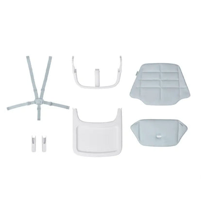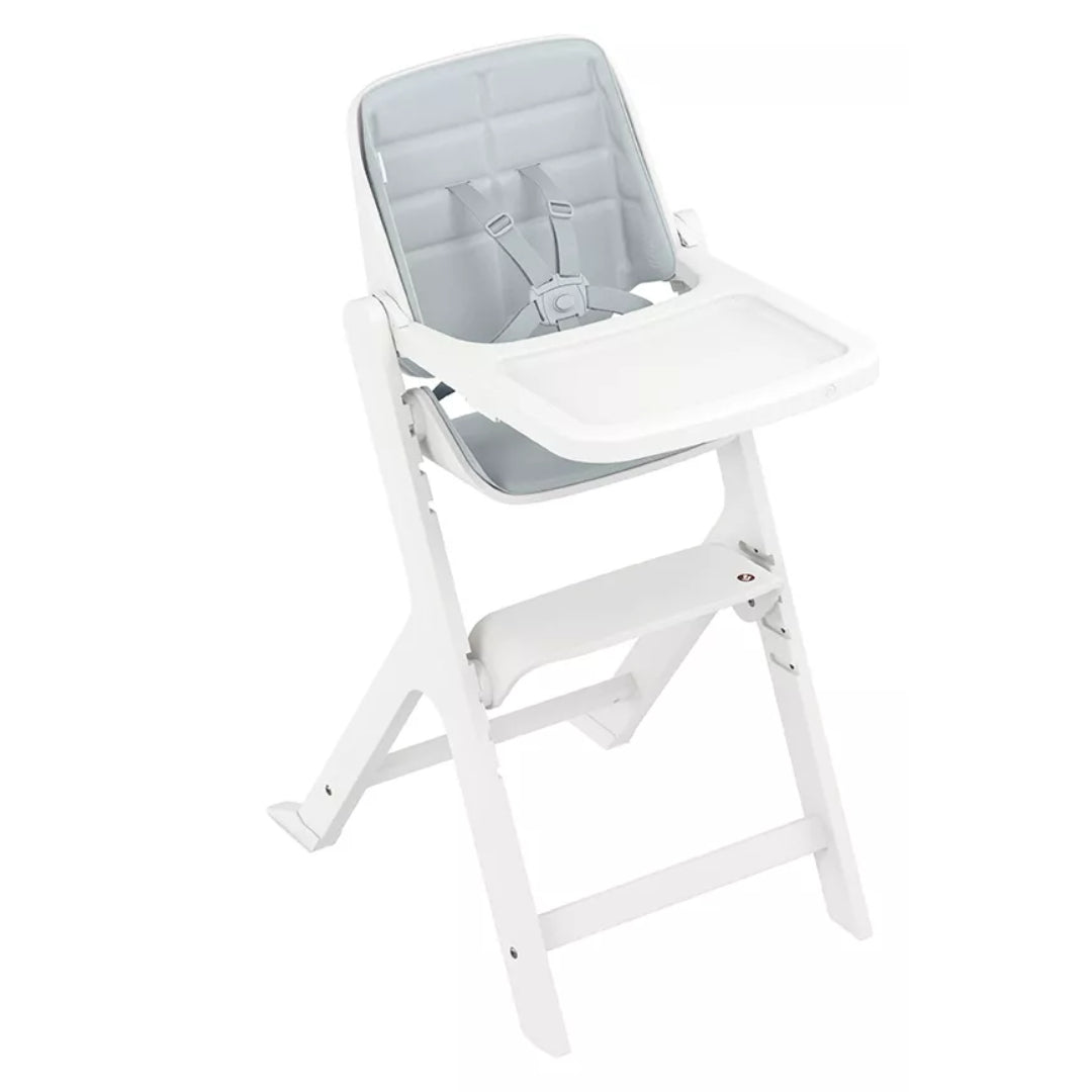 Esta silla incluye un reductor de tela fácil de limpiar, repelente al agua y lavable a máquina que está hecho de tejidos 100% reciclados. Además de una bandeja, barra en T, patas extensibles para mayor estabilidad y seguridad, y un arnés para mantener a tu pequeño cómodamente en su sitio.