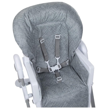 - Arnés de 5 puntos para seguridad: Para garantizar la seguridad de tu bebé, esta silla alta cuenta con un arnés de 5 puntos que mantiene al bebé firmemente en su lugar mientras está sentado.