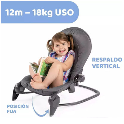 - Hamaca y asiento: puede usarse como silla mecedora hasta los 6 meses y, cuando tu hijo pueda permanecer sentado, puede transformarse en un asiento para relajarse