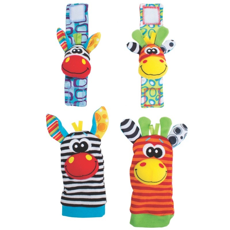 - Set de de 2 pies y 2 sonajas de muñeca, promueve a la exploración y el movimiento del bebé.