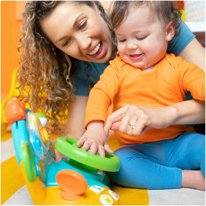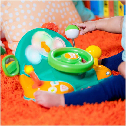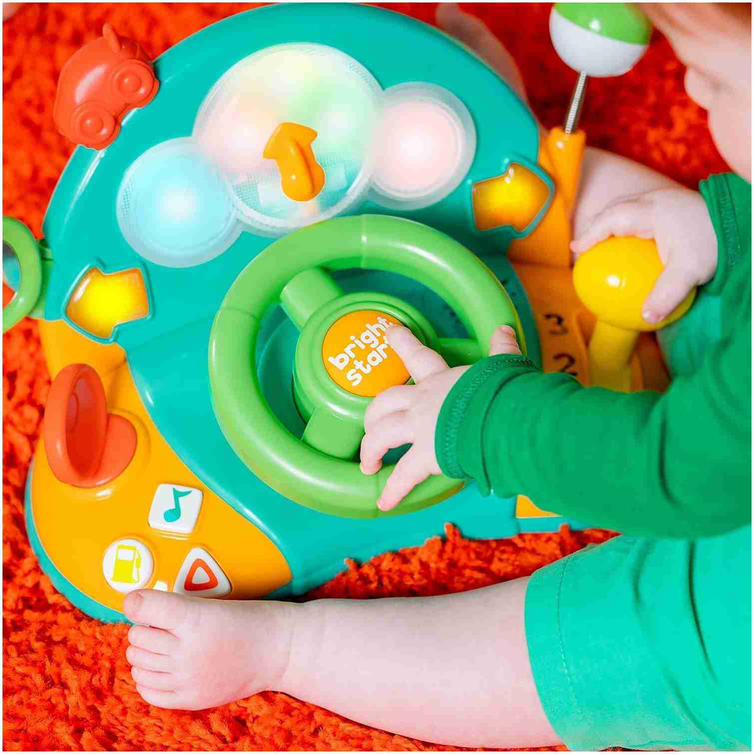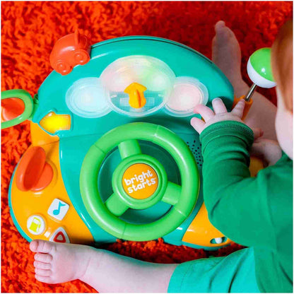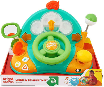 ¡Nada más estimulantes que su primer volante Lights And Colors Driver de Bright Starts! Este entretenido juguete le permite a tu bebé descubrir los primeros números, opuestos, canciones infantiles, ¡y más! Su forma de volante lo hace altamente atractivo y tu pequeño puede girarlo fácilmente y usar la palanca de cambios con números para un juego mucho más realista. Además, ¡tiene botones para luces de advertencia, bencina y divertidos sonidos! Tu pequeño conductor realizará diferentes y entretenidas actividades pensadas en mantener sus pequeñas manos divertidas en todo momento.