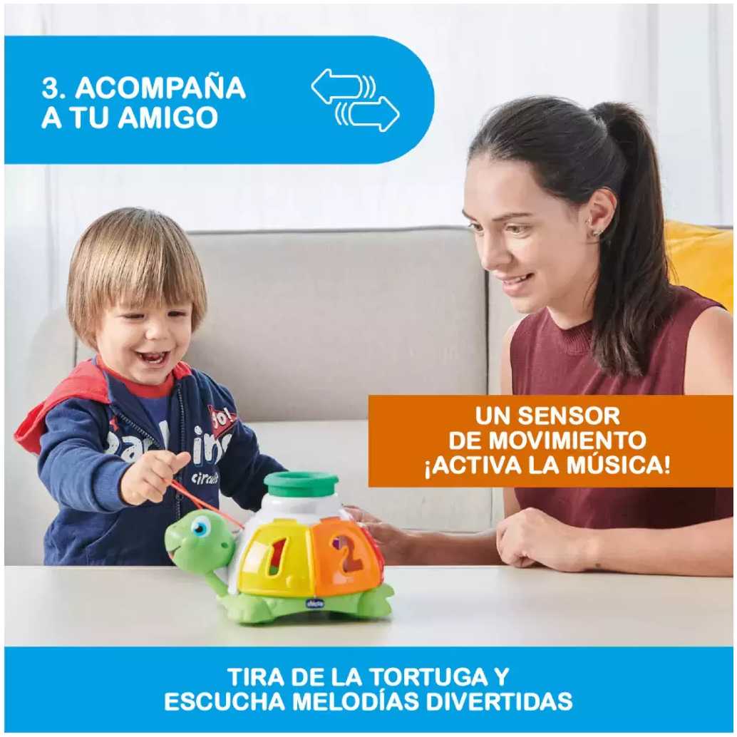 - Juguete de arrastre: La Tortuga Sorpresa de Chicco es un juguete electrónico y musical muy divertido que anima a los niños a moverse a través de una serie de actividades fantásticas y con cuerda para arrastrar el juguete como una mascota