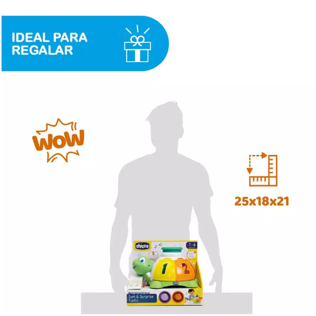 La tortuga clasificadora CHICCO Formas y Sonidos es un juguete educativo que ayuda al desarrollo de habilidades motoras finas y la coordinación mano-ojo del niño. Con luces y sonidos, el niño podrá aprender a reconocer formas y colores mientras se divierte. Apto para niños de 1 a 4 años de edad.
