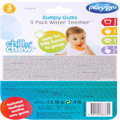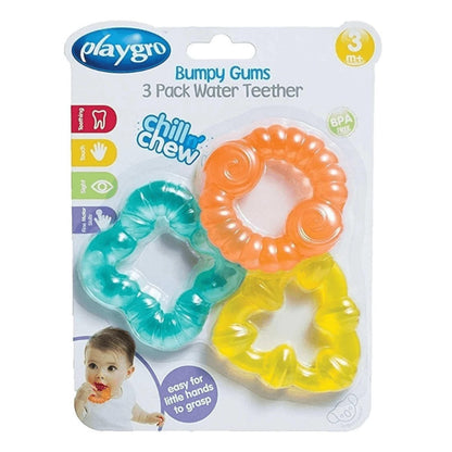 El tripack de mordedores de agua Bumpy Gums de PLAYGRO es la solución perfecta para aliviar las molestias de la dentición en los bebés. Estos mordedores, con su diseño atractivo y colores vibrantes, están llenos de agua y cuentan con texturas variadas que estimulan las encías sensibles del bebé. Su forma ergonómica facilita el agarre y permite que los pequeños lo sostengan con facilidad. Además, son refrigerables, lo que ayuda a calmar el dolor y la incomodidad al morder.
